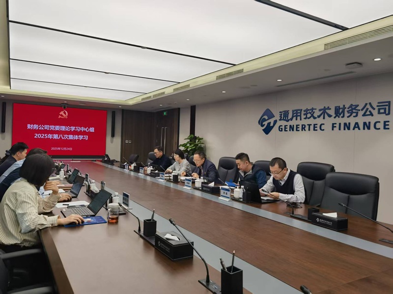 12月24日上午,通用技术财务公司党委开展理论学习中心组2025年第八次集体学习,公司党委书记、总经理岳海涛主持会议,公司领导班子成员,风险控制与法律合规部、办公室、党群人力部、纪检稽核部有关负责同志,团支部委员参加学习。