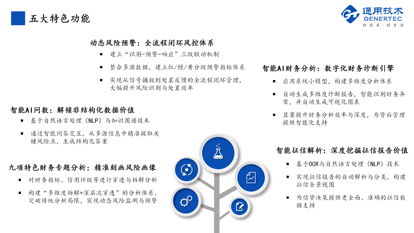 4.智能征信解析:通过OCR和自然语言处理技术,深度解析征信报告,自动提取关键信息,形成结构化、可视化的征信全景视图。