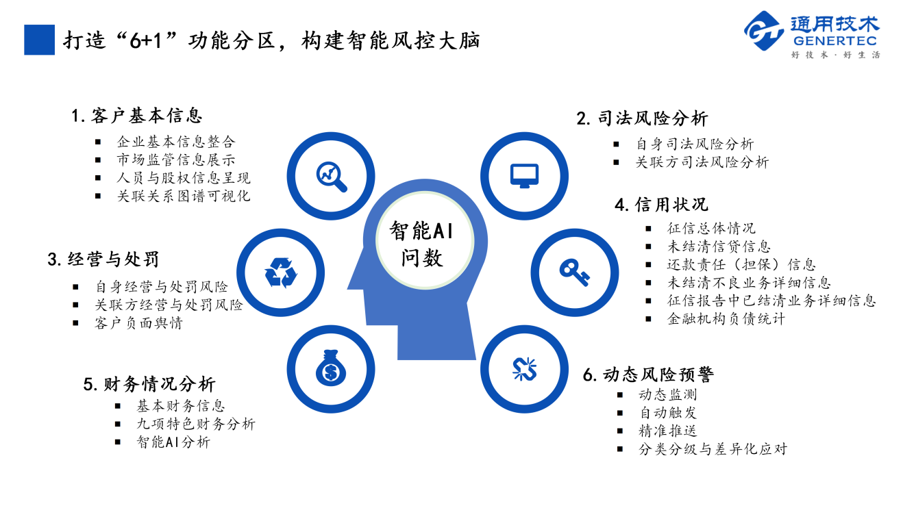 2.智能AI问数:运用自然语言处理等技术,解锁非结构化数据的风控价值,用户可通过智能问答快速获取关联关系、风险事件等信息。