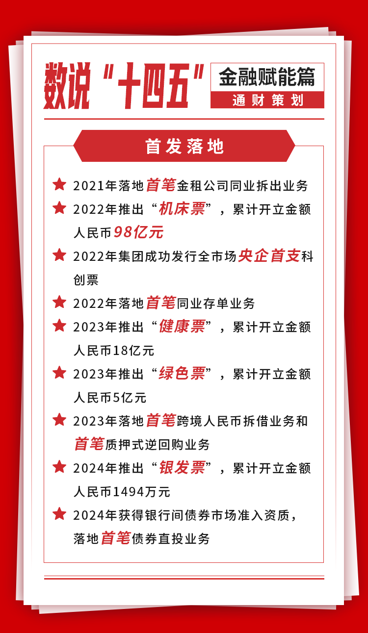 作为集团内专业的金融服务平台,“十四五”期间,通用技术财务公司积极发挥产融结合优势,通过多元化的融资工具与定制化的金融服务,精准助力主业发展,为集团产业升级与科技创新注入强劲的金融动力。