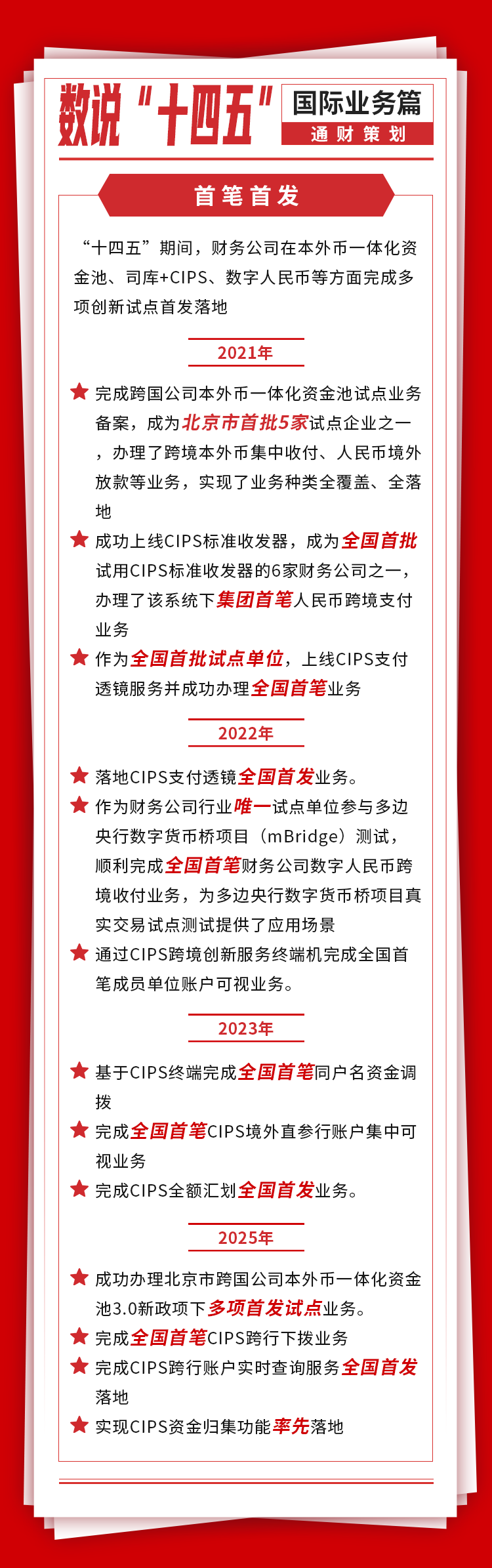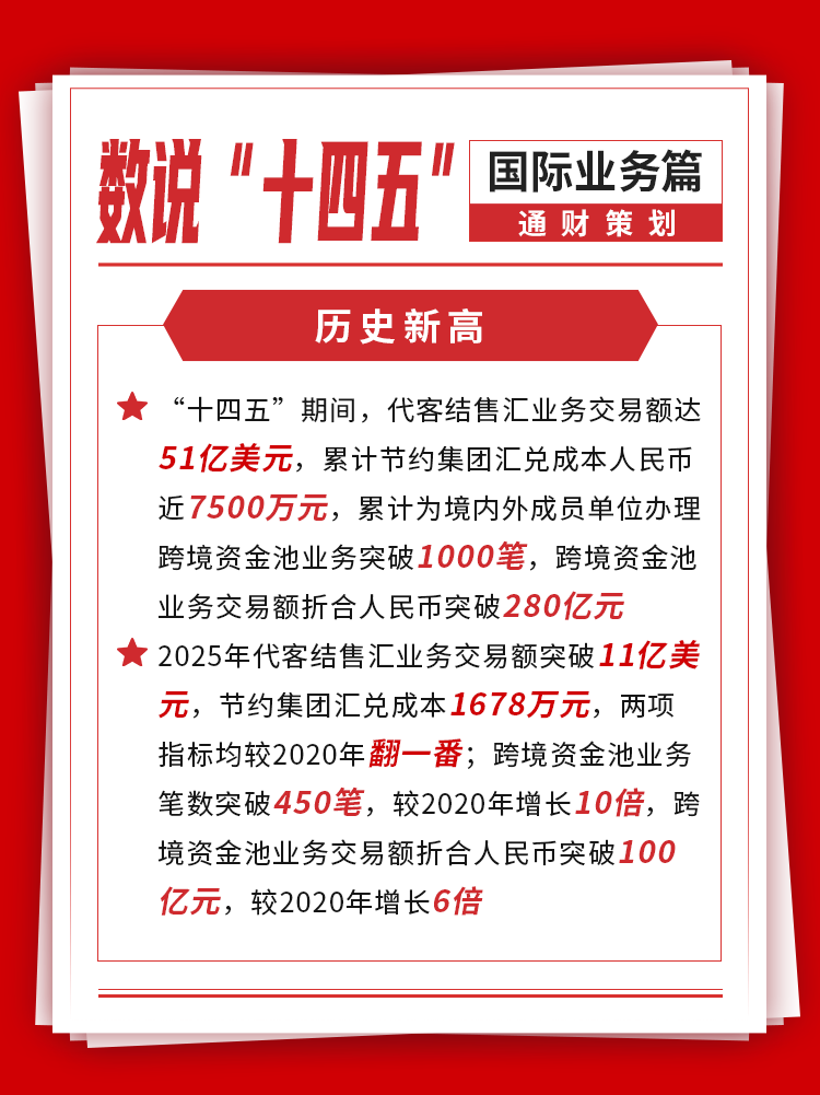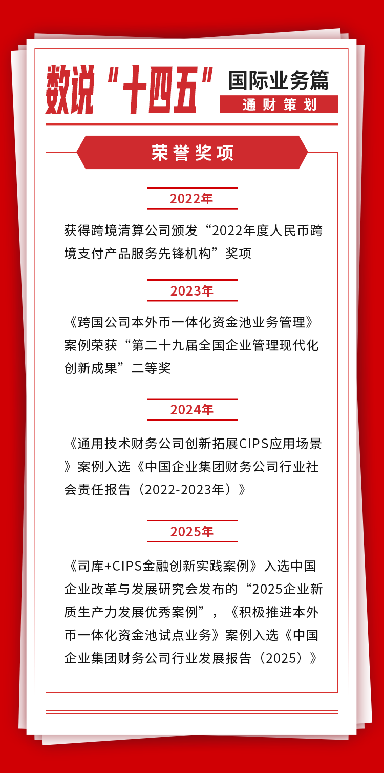 “十四五”期间,通用技术财务公司持续推进国际业务发展,与香港资本内外联动,充分用好政策试点红利,加强境内外一体化资金协同管理,提升跨境资金管理效率,降低外币融资成本,强化跨境风险防控及跨境合规管理,助力集团打造“引进来”和“走出去”主力军