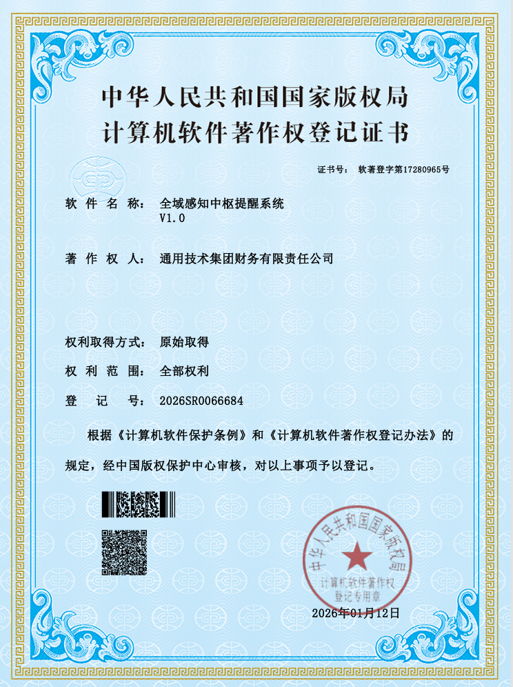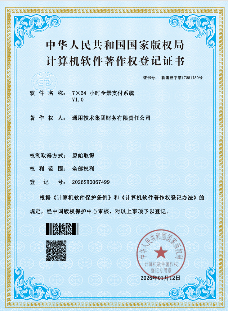 人勤春来早,奋进正当时。2026年一季度,通用技术财务公司科技创新工作捷报频传,7×24小时全景支付系统、全域感知中枢提醒系统、智能资金协同调拨平台三项核心技术成果顺利获得计算机软件著作权登记证书,标志着公司逐步形成覆盖资金结算、移动管理、智能运营等核心业务领域的数字化产品矩阵,在金融科技自主创新与数字化转型道路上迈出了坚实步伐。