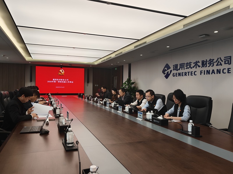 4月16日上午,通用技术财务公司召开2026年第一季度党建工作例会,公司党委书记、总经理岳海涛主持会议,公司领导班子成员、各党(总)支部书记,办公室、纪检稽核部、党群人力部相关负责同志参加会议。会议传达学习了集团专职副书记培训班暨组织工作干部履职能力提升培训班精神,宣贯财务公司党委2026年党建工作要点,听取各党(总)支部“三会一课”和主题党日活动计划、树立和践行正确政绩观学习教育工作安排,以及一季度重点工作推进情况的汇报。